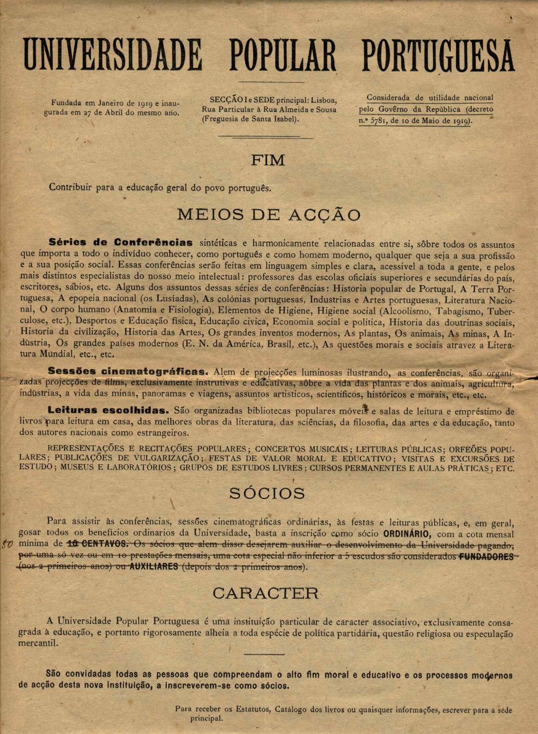 Data 1919 Bento de Jesus Caraça integrou o Conselho Administrativo da Universidade Popular Portuguesa desde a sua fundação, em 1919