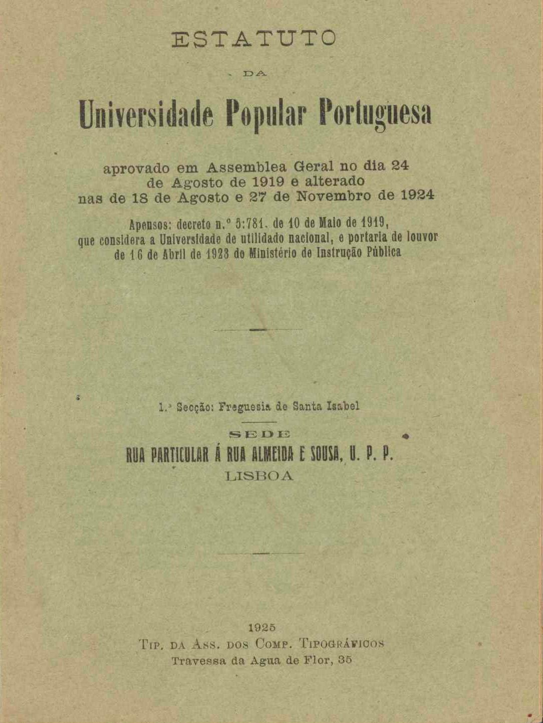 Data 17-11-1924 A Assembleia Geral da Universidade Popular Portuguesa aprova alterações ao respetivo Estatuto. Bento Caraça desempenha já um papel relevante na vida da UPP.