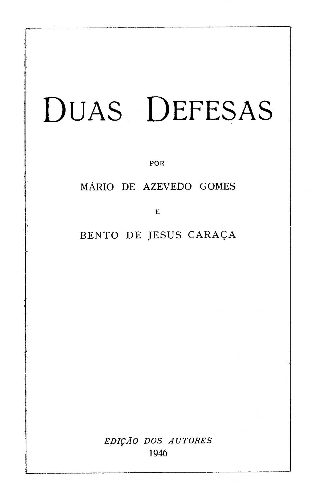 Em face da demissão decretada pelo governo de Salazar (e pelo ministro Caeiro da Mata). Mário de Azevedo Gomes e Bento de Jesus Caraça publicam, em Edição dos Autores, as respetiva defesas, respetivamente de 21-09-1946 e de 18-09-1946, contrariando assim os termos da nota oficiosa do ministério da Educação Nacional.